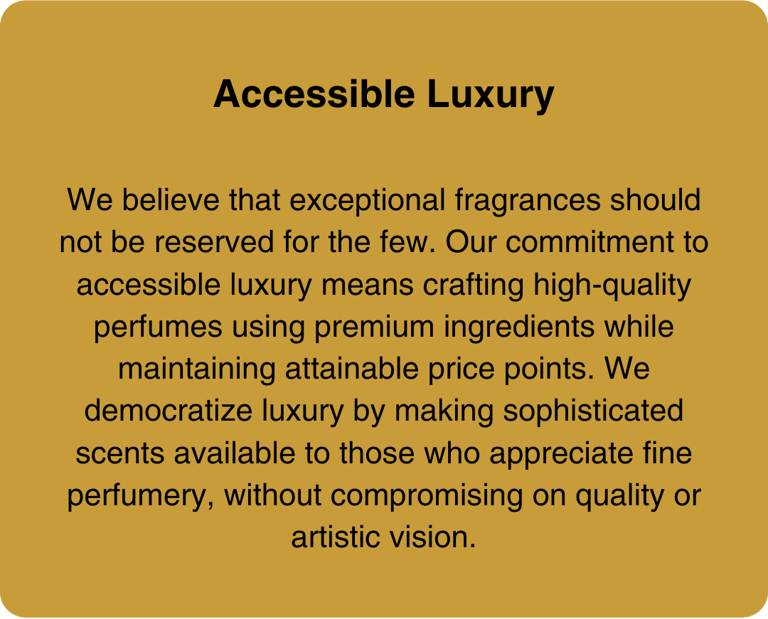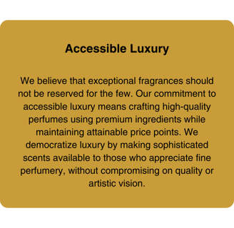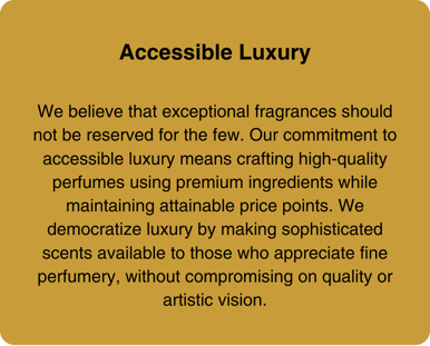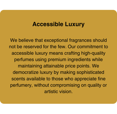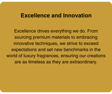 We believe that a scent is far more than a fragrance—it’s an extension of who you are. This philosophy drives our relentless pursuit of innovation, seamlessly blending timeless craftsmanship with modern techniques. Using only the finest ingredients sourced globally, we ensure each bottle exudes luxury, quality, and authenticity.